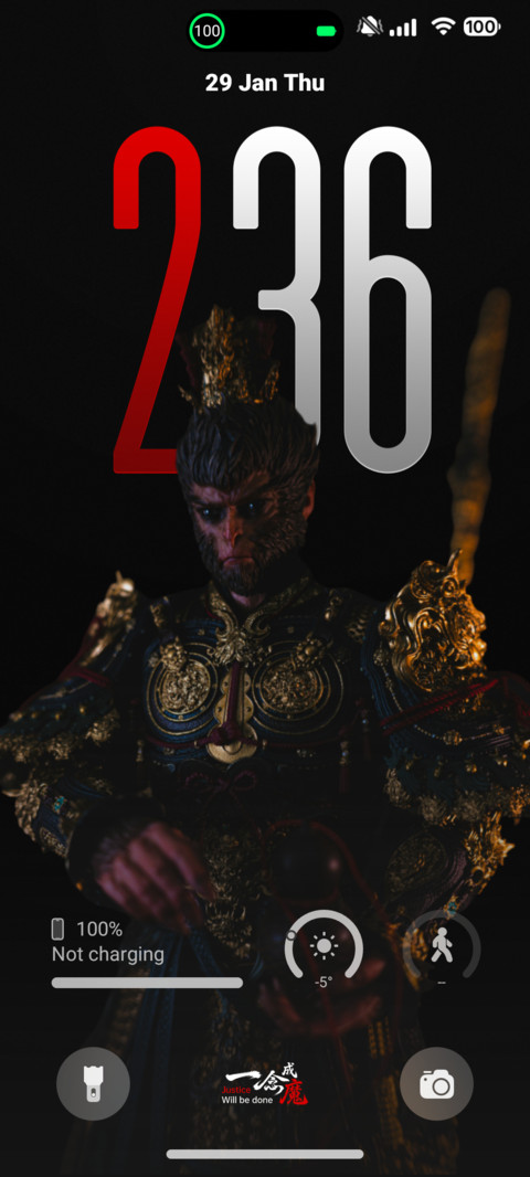 - Sophisticated Lock Screen: A refined lock screen featuring clear time, date, and notification displays, coupled with secure, quick-access shortcuts that blend seamlessly with the theme's core design.